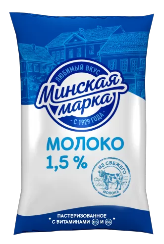 Молоко питьевое пастеризованное с витаминами массовой долей жира 1,5 %, п/эт.пл., 0,9 л., т.м. Минская марка