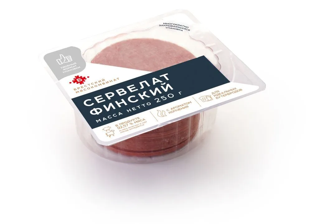 Купить Колбаса варено-копченая сервелат «Финский» 250г можно с доставкой по Орле. Мы гарантируем отличное качество и свежесть наших белорусских колбас!